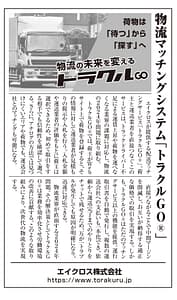 日経産業新聞に掲載されました。 トラクルGO®が2024年問題を解決するロジスティクスイノベーションとして 日経産業新聞に掲載されました 『日経産業新聞』(2023年7月31日)の9面に当社の紹介がされています。 お手に取る機会がございましたら、ぜひご覧ください。 また下記のリンクからもご覧いただけます。 👉「2024年問題解決!! ロジスティクスイノベーション」『日経産業新聞』(2023年7月31日)